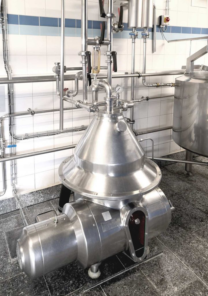 Pour l’écrémage du lait et du lactosérum. Machine auto-nettoyante/auto-débourbeuse pour montage au sol ou sur châssis. Vanne de contre-pression avec by-pass à commande manuelle ou automatique.