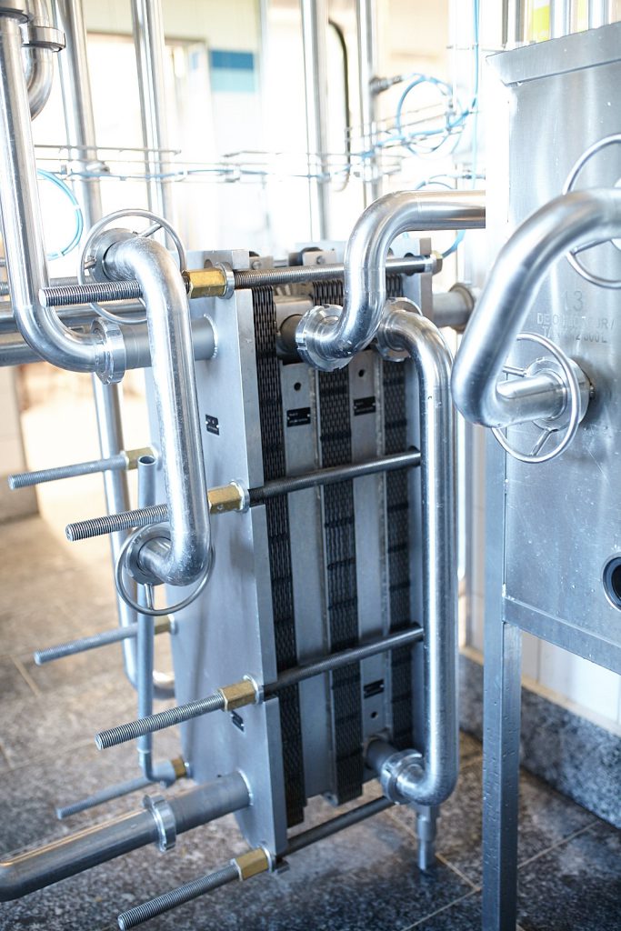 Pour le refroidissement, la thermisation ou la pasteurisation en ligne. Système automatisé avec bac de lancement et tube de chambrage. Installation au sol ou sur châssis.